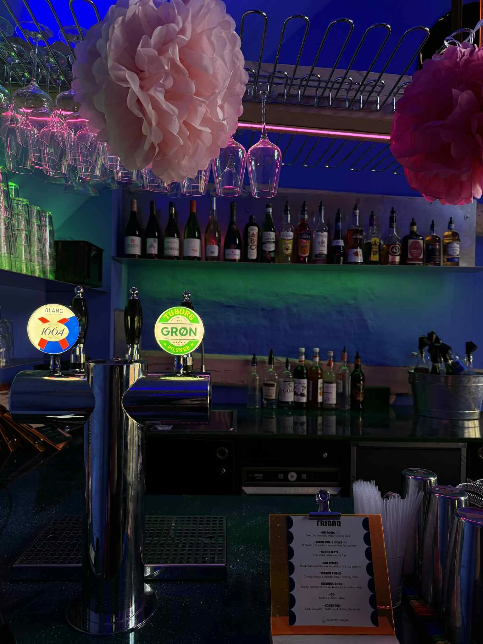 Det Blå Rum er indrettet med samme legesyge og farverige stil, som resten af Yoyo – men med sin egen intime og eksklusive stemning. Det er det oplagte valg til fødselsdage, polterabender, firmaarrangementer eller bare en aften, hvor I vil være jer selv, uden at gå på kompromis med stemning og kvalitet.